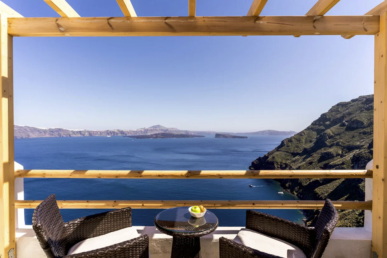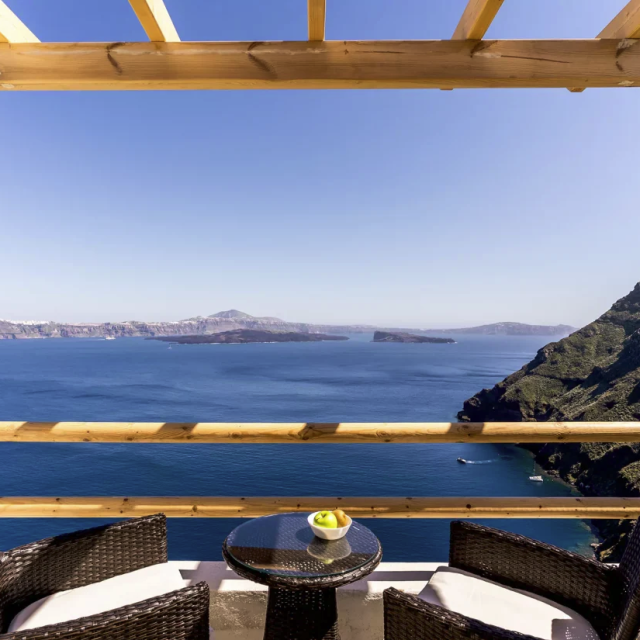 Nestled in the heart of the Cyclades, a small island has remained still in time, maintaining its authentic character, and has kept the influence of the modern day from altering its peaceful lifestyle. Thirassia, the sister isle of Santorini was born of the volcano and has since epitomized the pure, blissfully simple way of island living, and is where Evanthia Best View Hotel welcomes you to an immersive experience of comfort, privacy, and tranquility. Paired with exquisite views of the sea, the volcanoes and the caldera of Santorini, the supreme facilities and services of Evanthia Best View Hotel offer a holiday experience made of dreams.